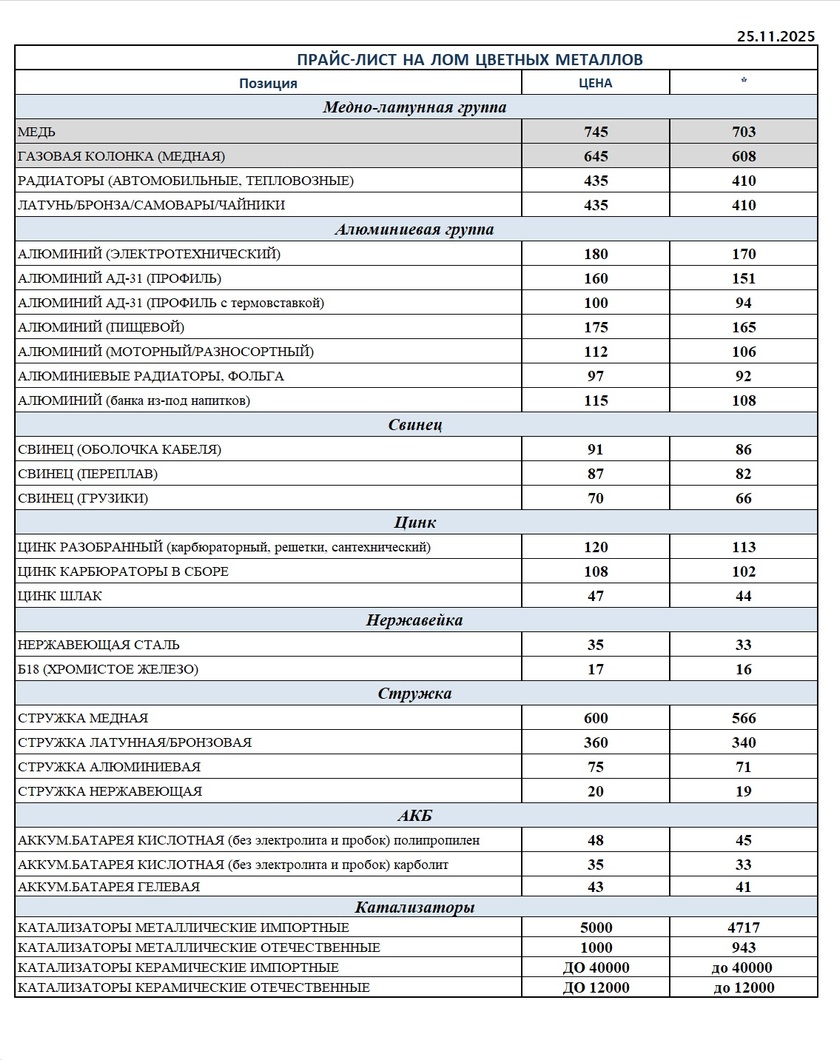 Узнать актуальные цены на все виды лома можно по номеру телефона приёмного пункта!